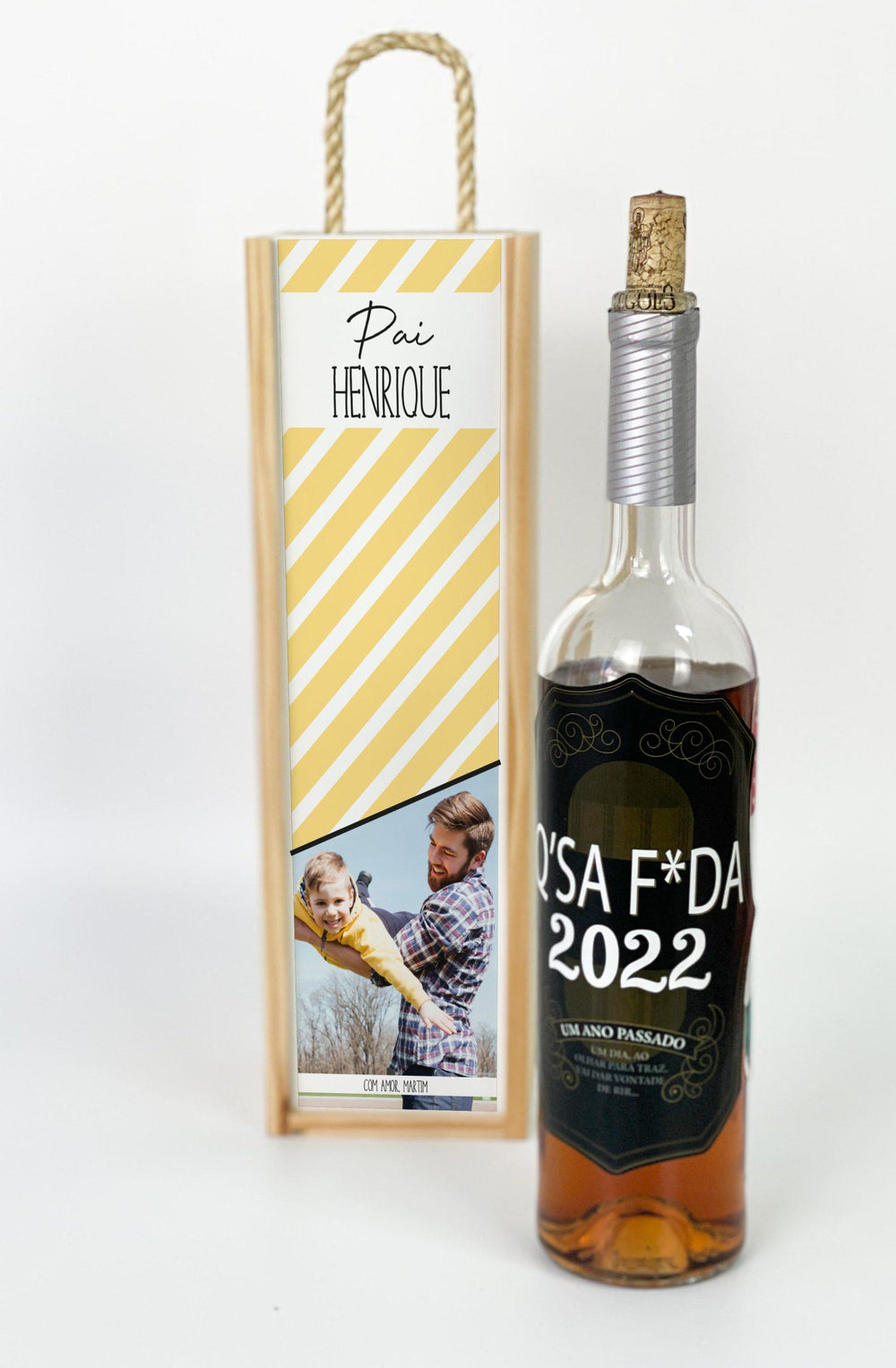 As datas especiais são como uma boa garrafa de vinho: mais saborosas quando partilhadas! Com a nossa caixa para garrafa personalizada podes surpreender, homenagear ou divertir! A escolha é tua.
