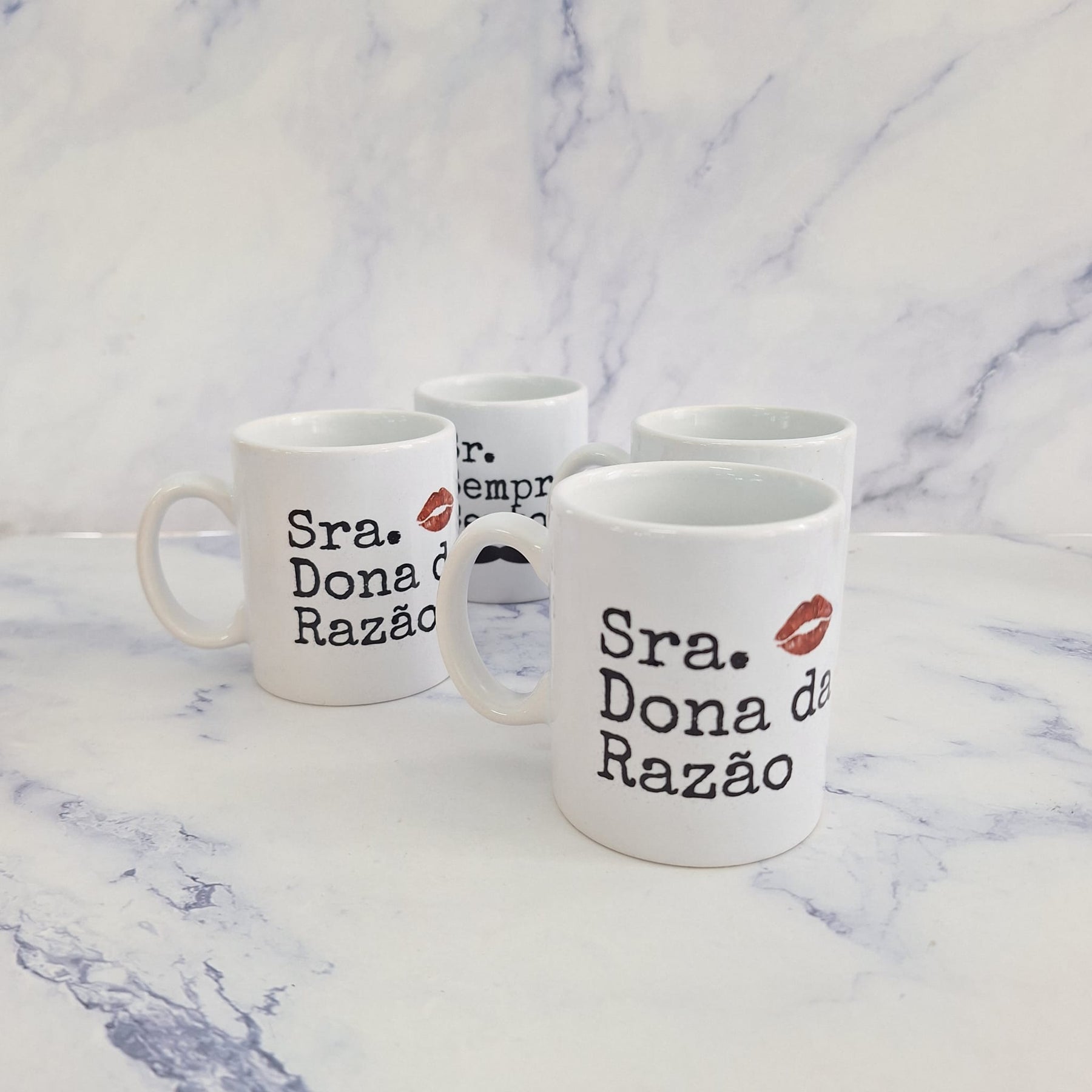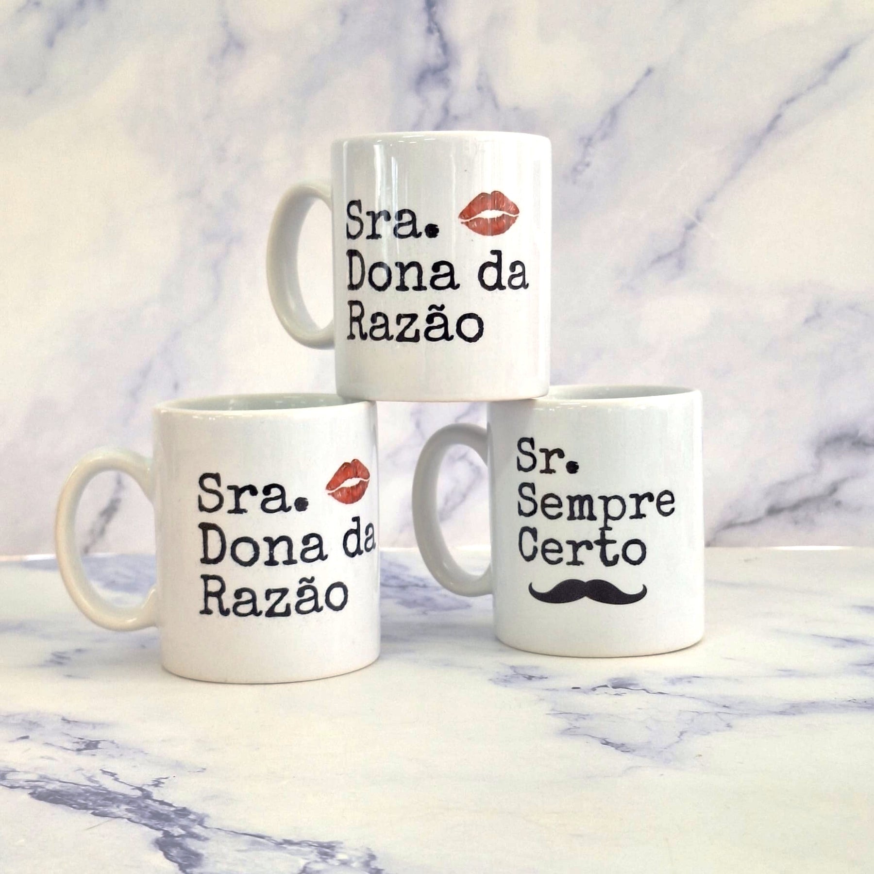 • Chávena de cerâmica para café “Sr. Sempre Certo” e “Sra. Dona da Razão”