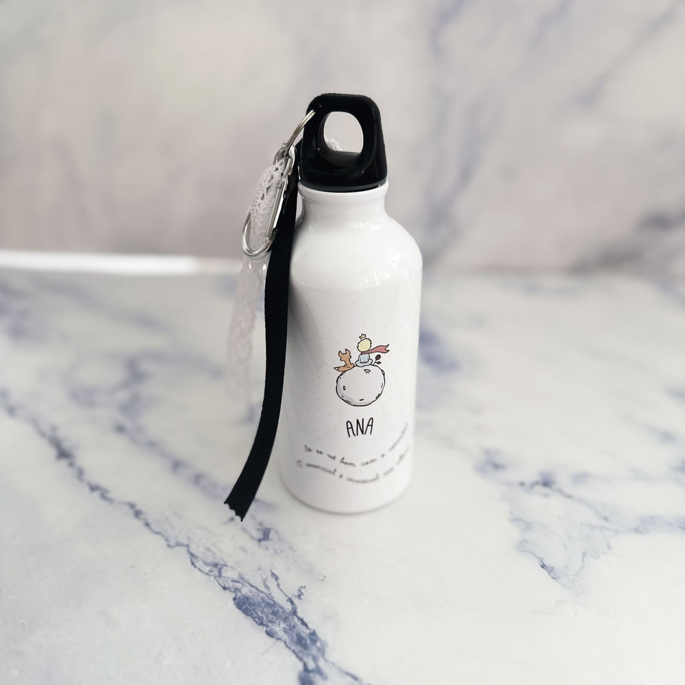 Garrafa Principezinho personalizada com nomes e frases emblemáticas do livro "O Principezinho"