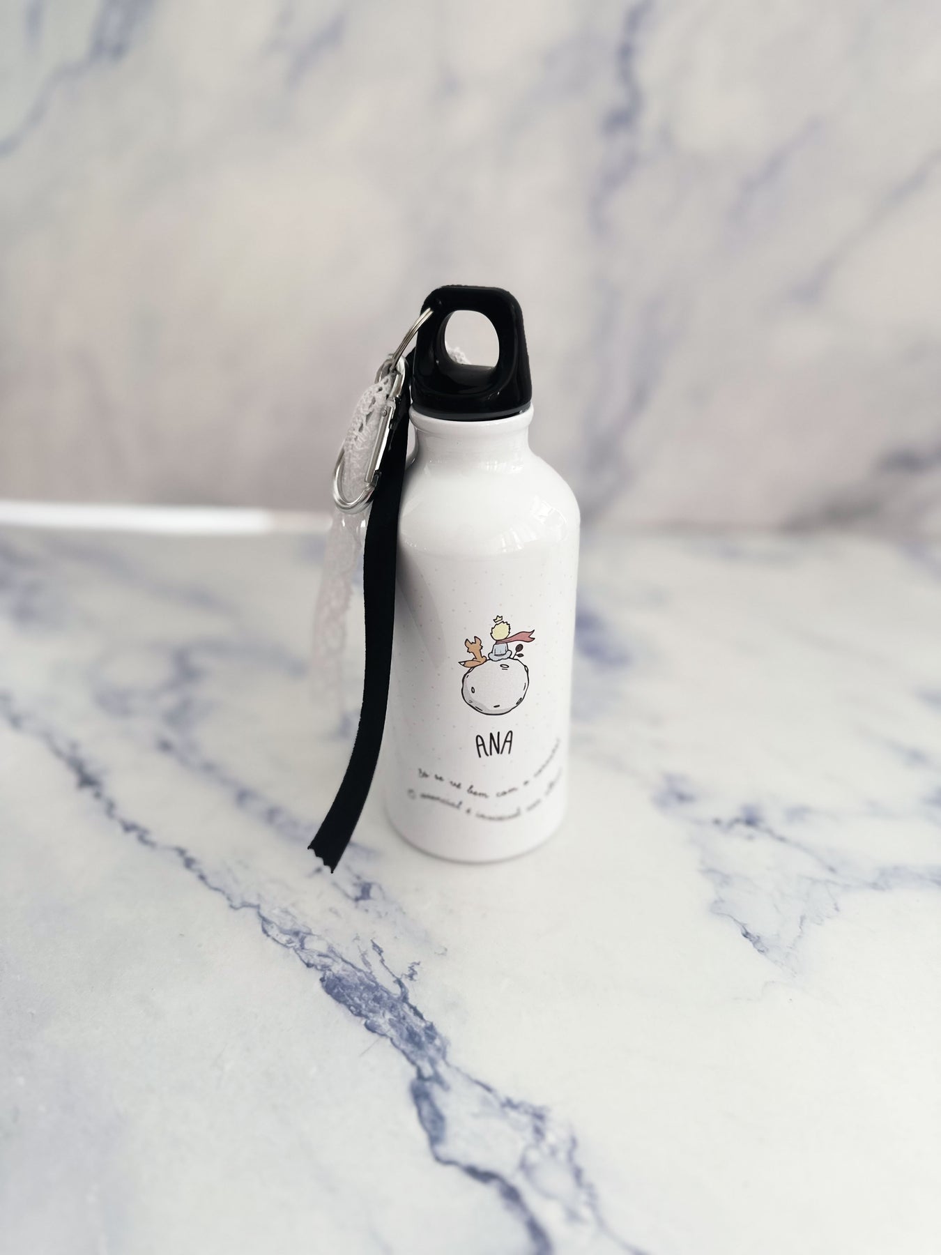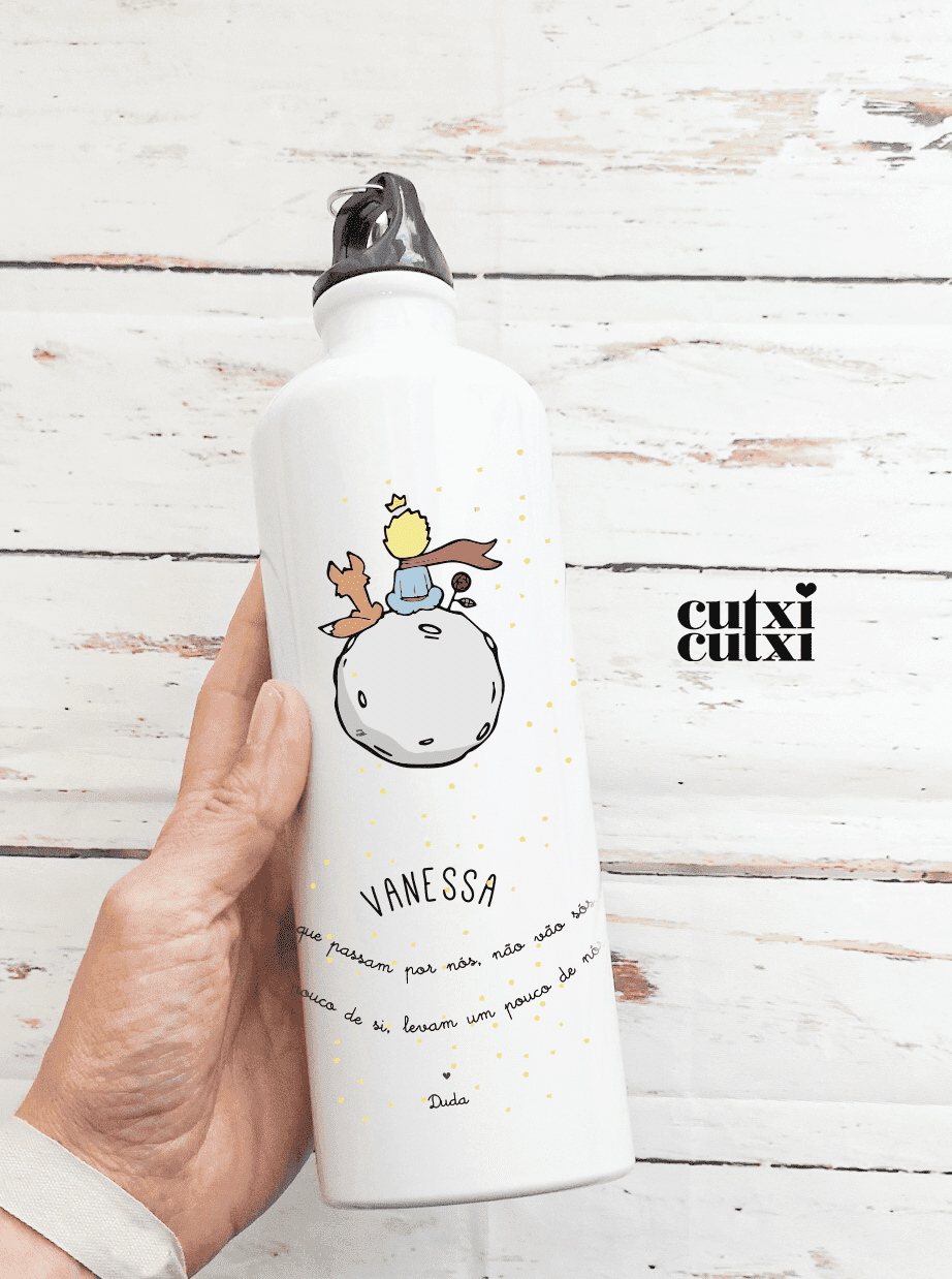 Garrafa Principezinho personalizada com nomes e frases emblemáticas do livro "O Principezinho"