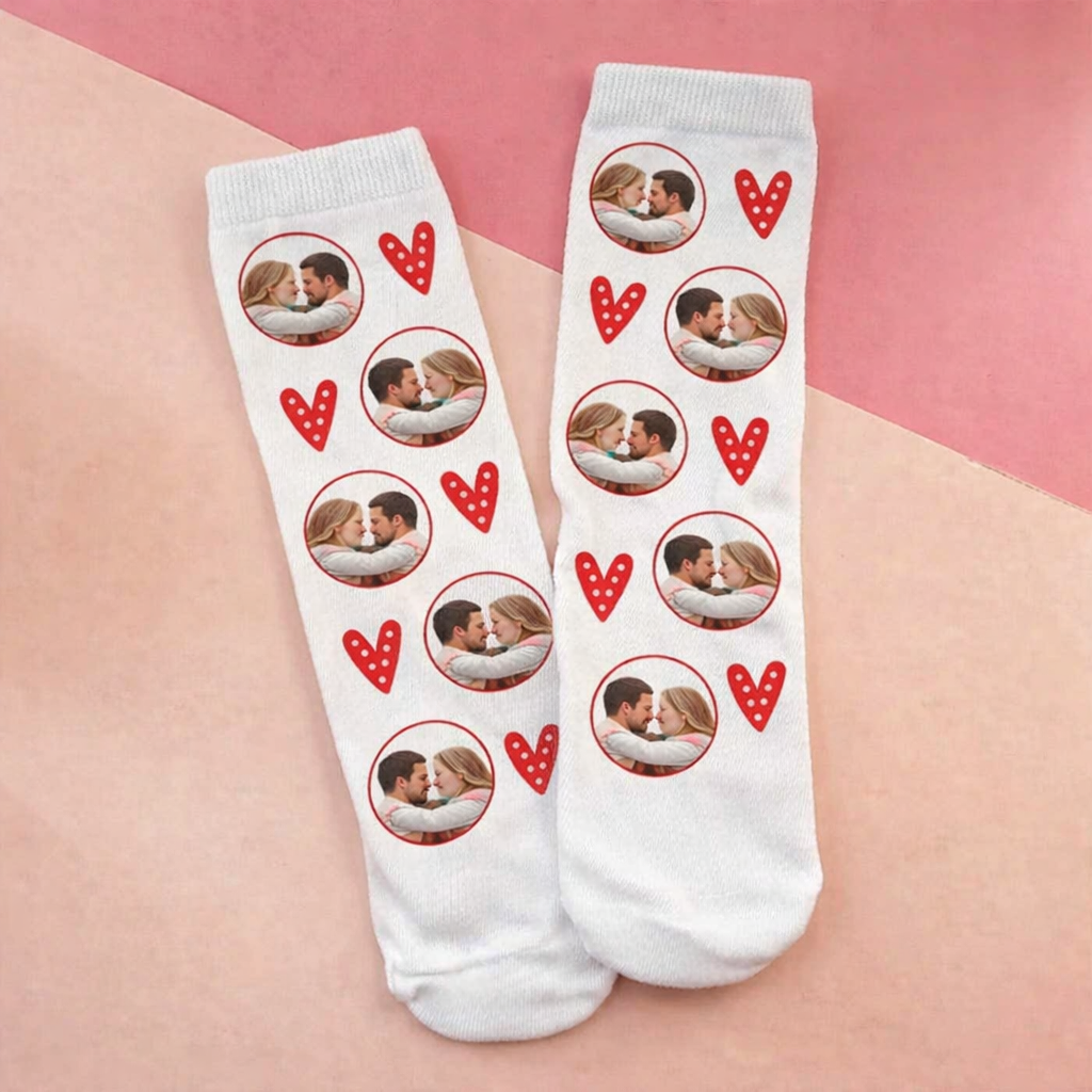 Meias Personalizadas com Fotografia e Corações – O teu amor a teus pés 🧦❤️