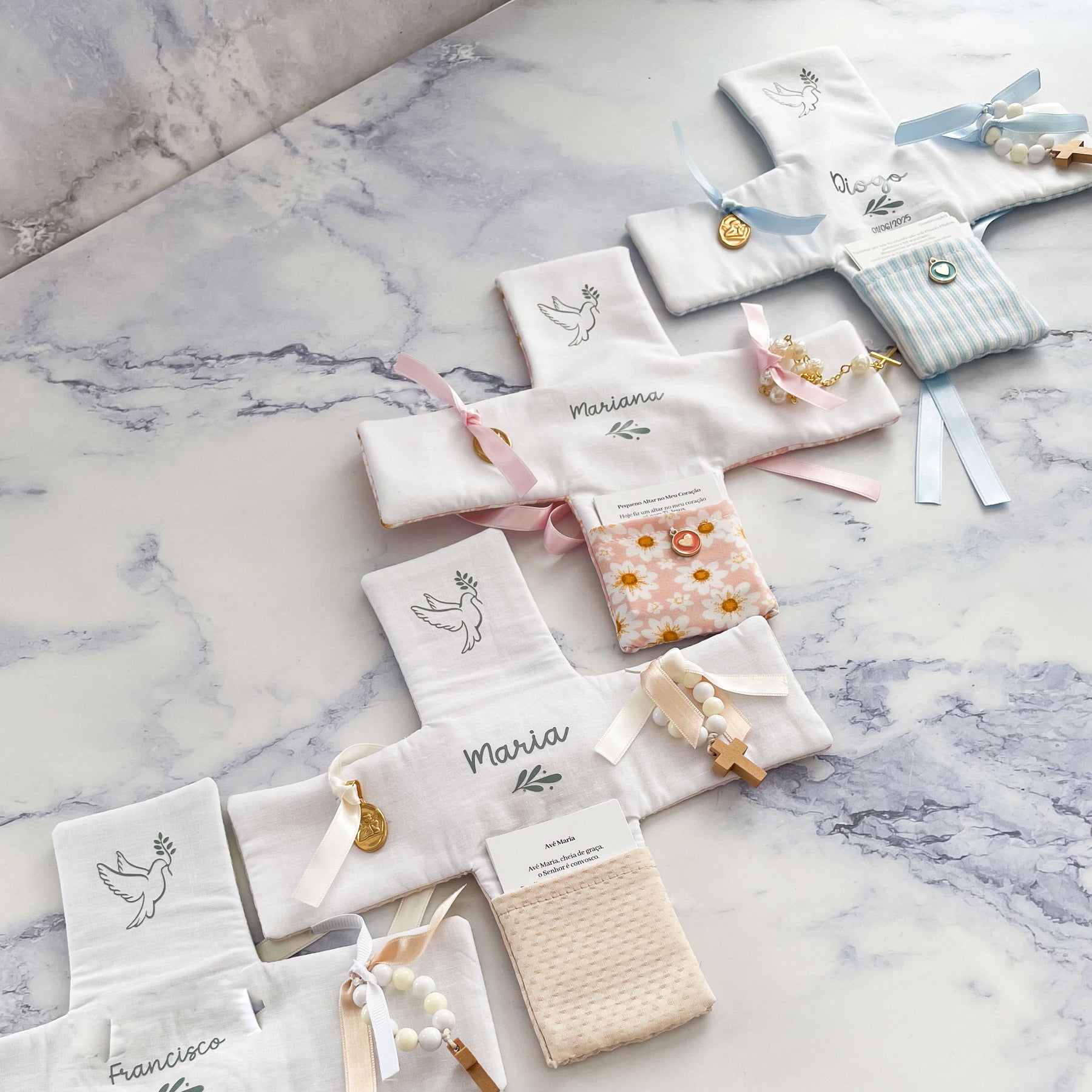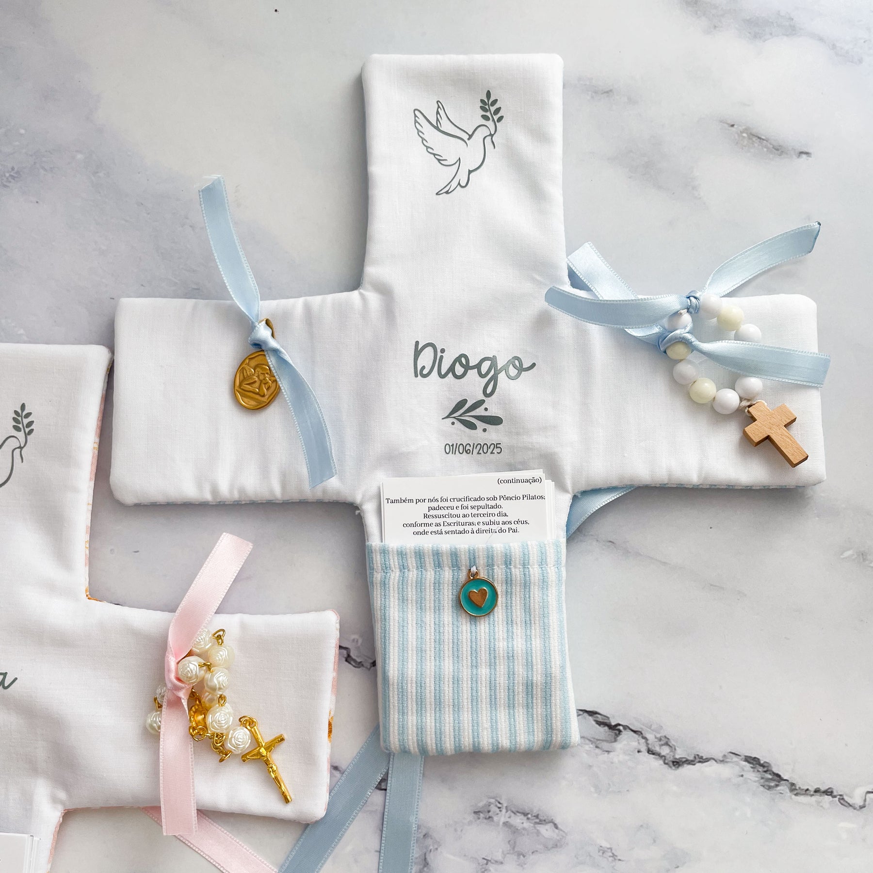 Um presente cheio de fé, ternura e significado, perfeito para celebrar momentos únicos como a Primeira Comunhão ou o Batizado. 🌿