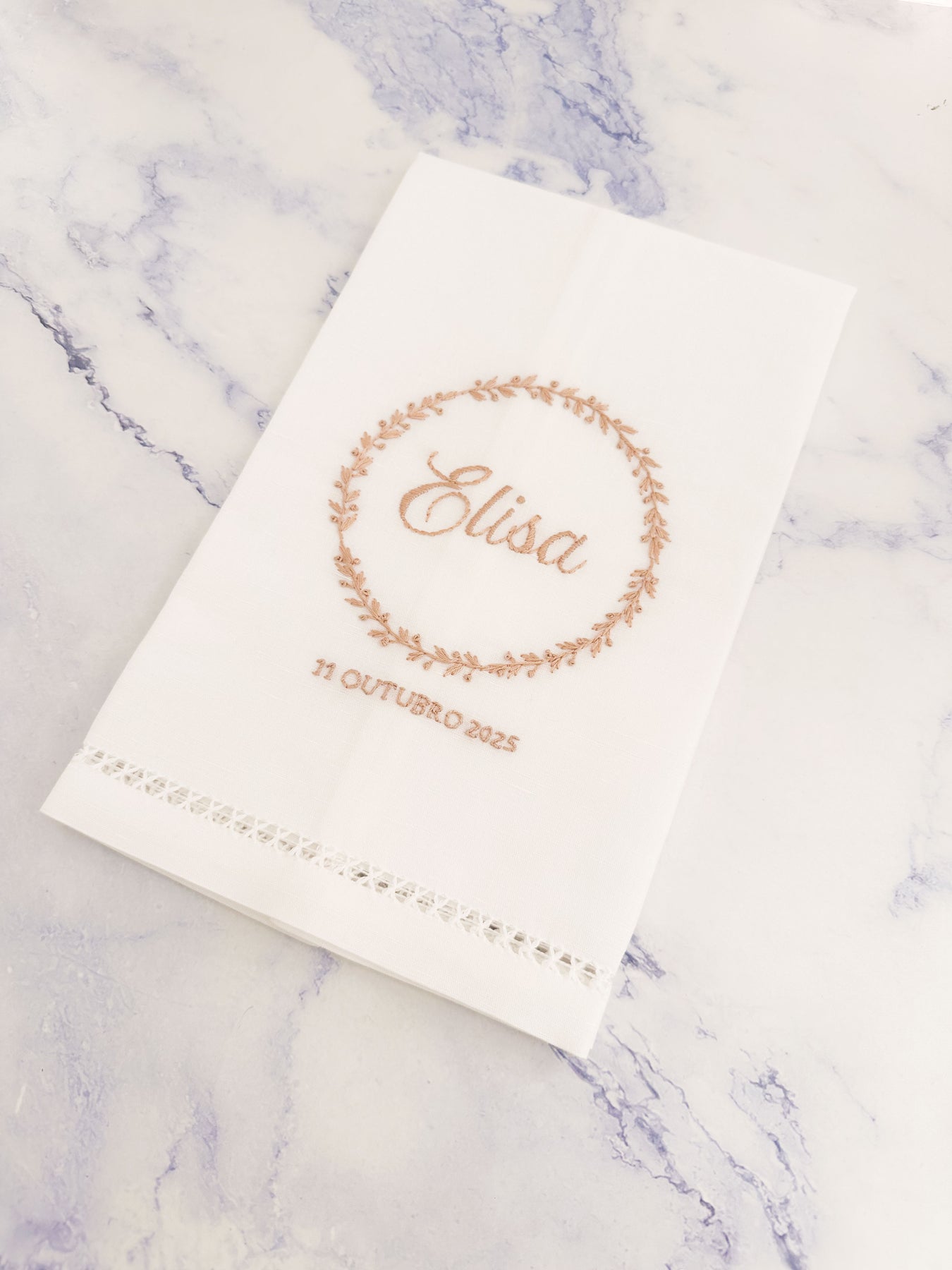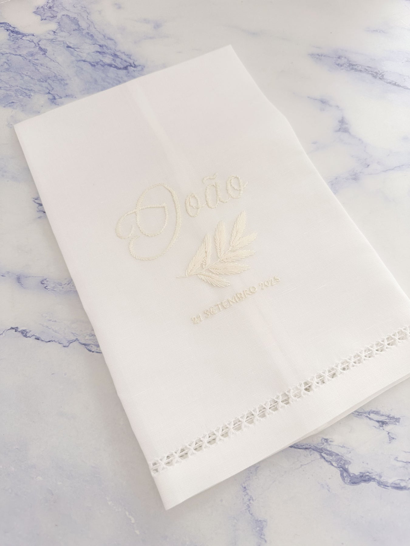 Estas belíssimas toalhas para batismo podem ser personalizadas com vários tipos de moldura diferentes, incluindo o nome do bebé ou criança, e também a data do evento. Não só são feitas de um material duradouro e sustentável (ficarás com uma recordação para a vida inteira), como também satisfazem os gostos mais tradicionais com a sua personalização bordada à mão.
