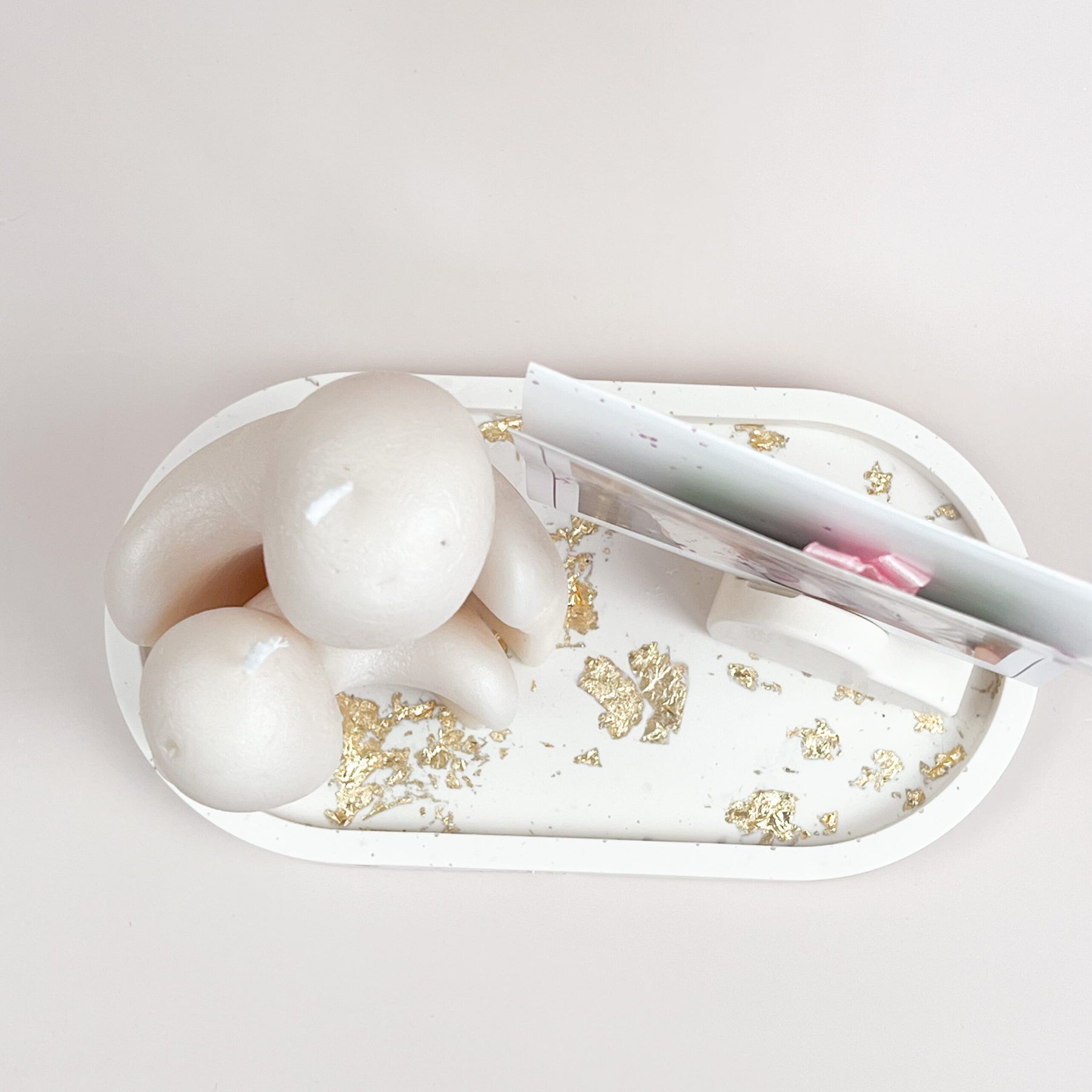 O tabuleiro elegante, com detalhes em dourado, é a base perfeita para as velas e para o porta fotografia. Com um design sofisticado e moderno complementa qualquer decoração, tornando-o ideal para jantares românticos ou como peça decorativa no dia a dia.