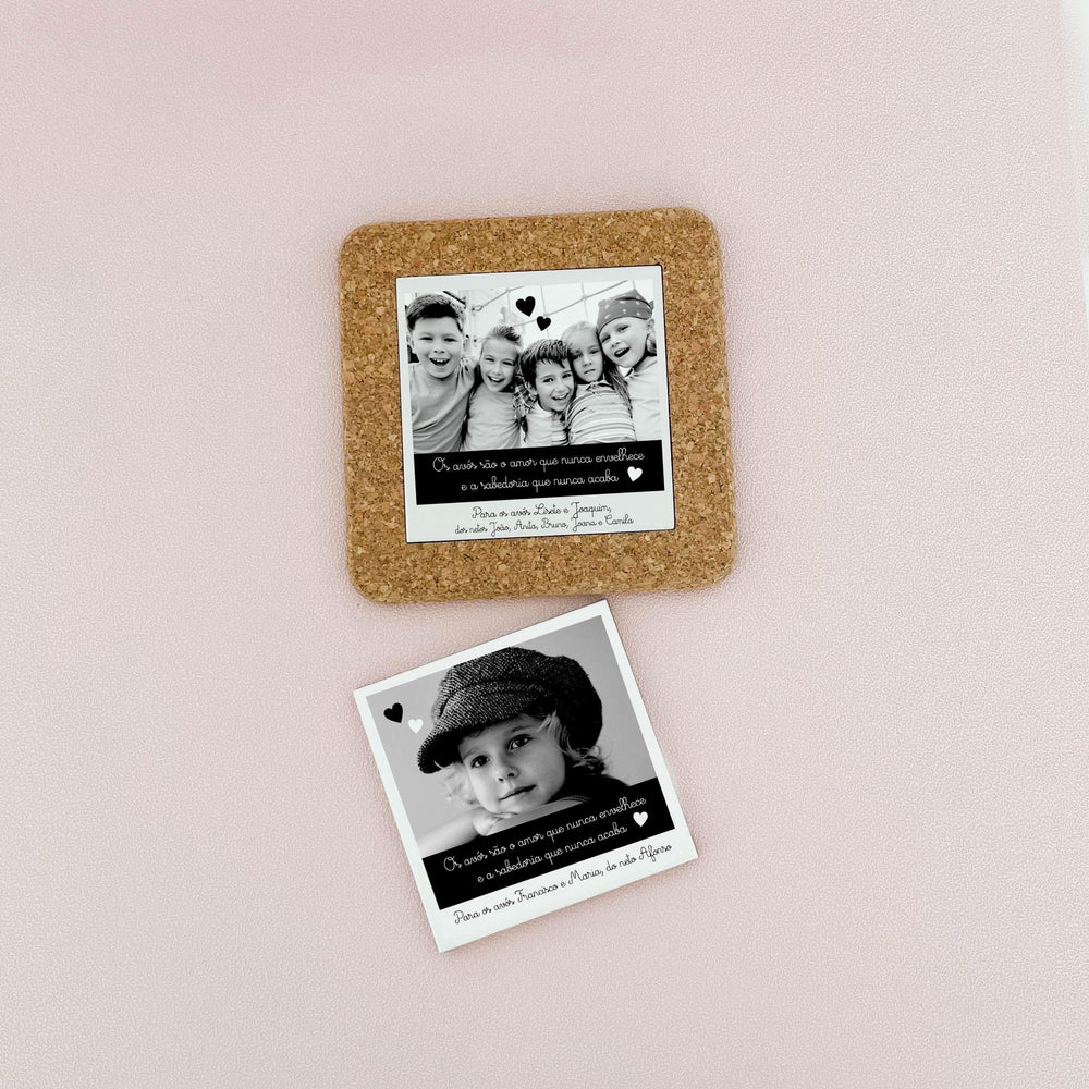 Este original azulejo cerâmico personalizado é surpreendentemente versátil, pois tanto pode ser exposto num local de destaque, como pode ser usado como base de copos (optando pela base de cortiça), ou, pode até ser aplicado na parede, pelos fãs de um uso mais tradicional. Além de tudo isto, damos-te também a opção de incluir o saco de algodão personalizado e a base, para que fique prontinho a oferecer àquela pessoa especial. 🎁