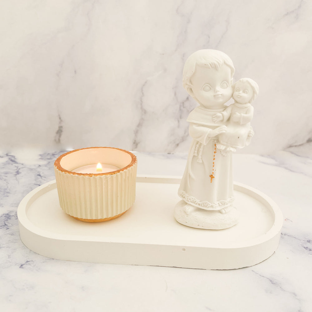 Estatueta Elegante com base e vela | Sagrada Família Pintada à Mão