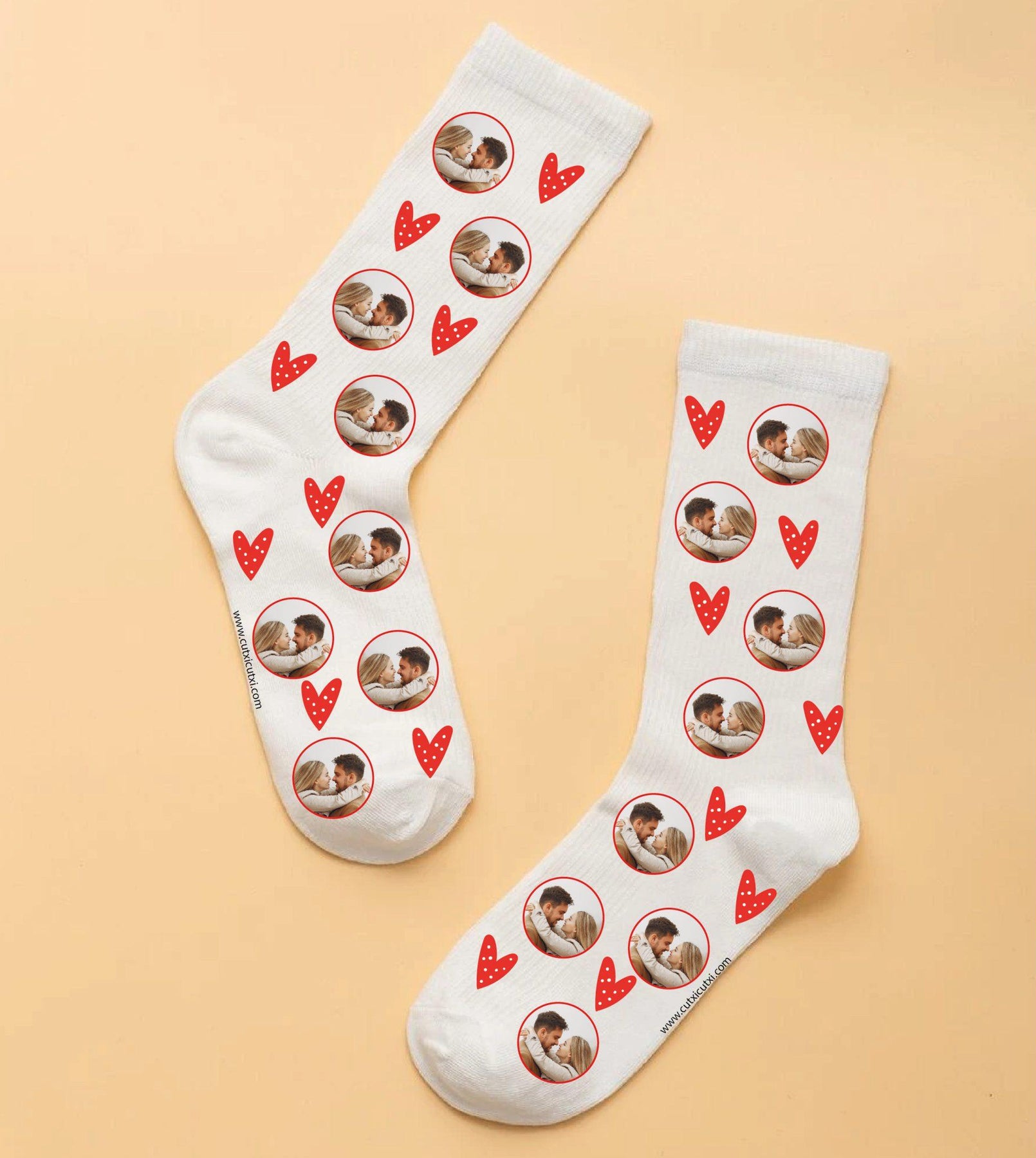 Meias Personalizadas com Fotografia e Corações – O teu amor a teus pés 🧦❤️